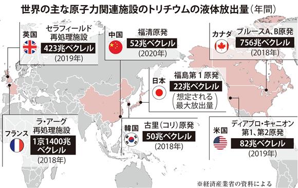 添付のマップはよく引き合いに出されるけど、核燃料再処理工場に関しては、トリチウムも他も全部含んだ核燃料の処理をしているんだから、それを比較しないとだめだと思う。今からでも遅くはない。そして、もし、世界の再処理工場に2023年の現在において問題があるなら、ダメなんだよ。>>284