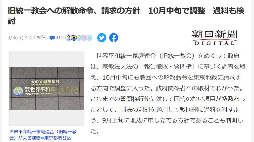 統一教会解散命令~10月中旬で調整Wwwww>>1