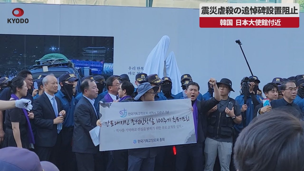 韓国、震災虐殺の追悼碑設置阻止 ソウルの日本大使館付近で