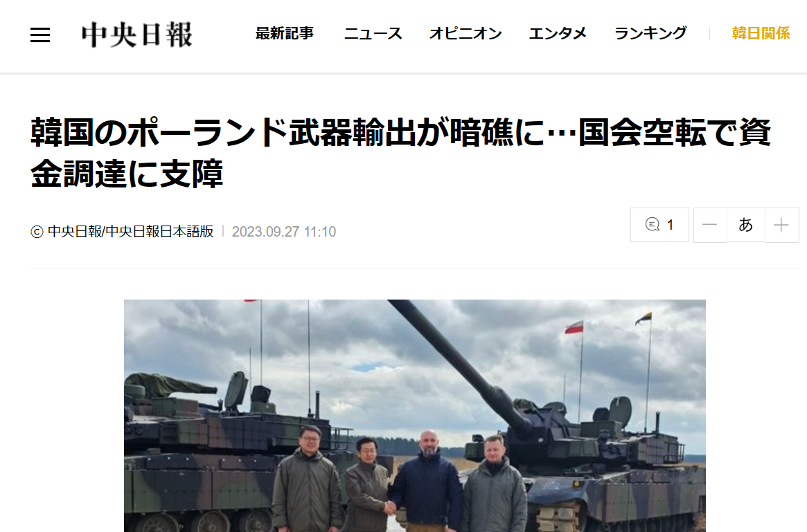 そのため野党連合が主導する新政権が発足すれば韓国の防衛産業企業が進めている武器輸出交渉が中止される恐れがあると同紙は伝えた。同紙は韓国企業代表、元防衛事業庁幹部らの話として、ポーランド新政権の立場では今年の国防費と比較して今回の契約規模がとても大きく感じられるだろうと指摘した。