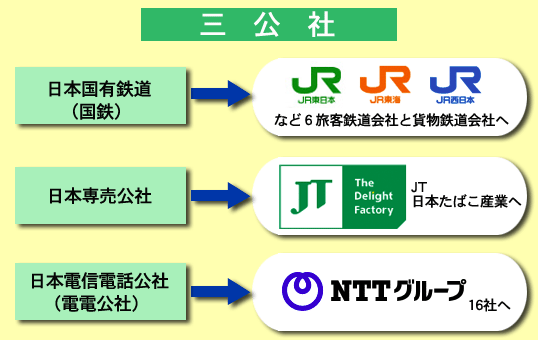 日本国有鉄道 → JRグループ、日本国有鉄道清算事業団(解散)