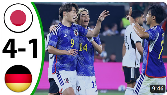現地9月9日、日本代表は敵地ヴォルフスブルクでドイツと対戦。11分に伊東のゴールで先制し、19分にはサネに同点を決められるも、その3分後に上田が突き放して再度リードを奪う。後半は守勢に回る時間帯が長かったがドイツにチャンスらしいチャンスを与えず、終盤に浅野と田中が加点。終わってみれば4-1の大勝で、カタール・ワールドカップ敗戦のリベンジを期した強国を返り討ちにした。