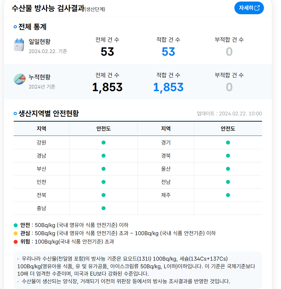 2011年の福島事故以降、韓国の水産物から放射能が基準値以上検出された事例は一切無し。