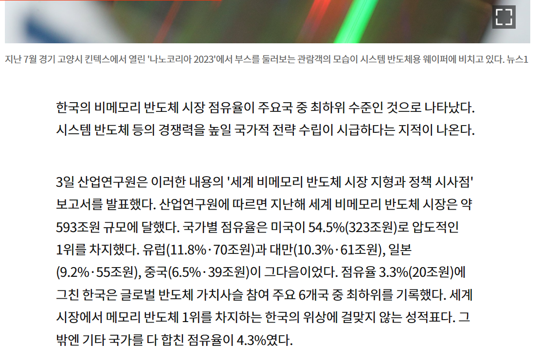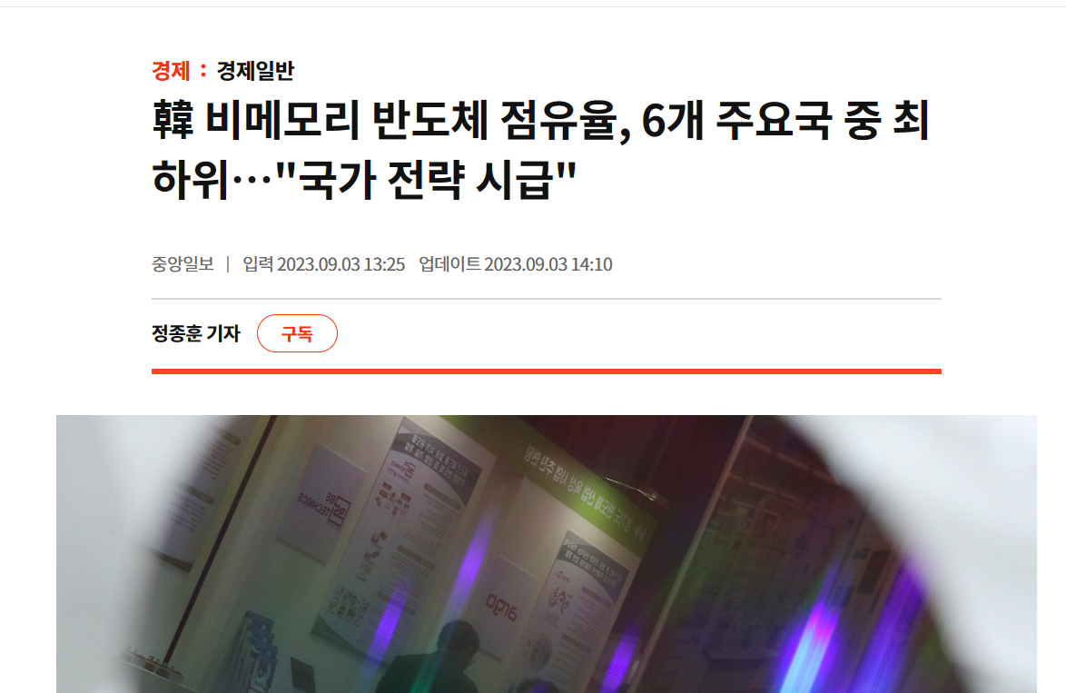 半導体大国の韓国、非メモリーは最下位…「国レベルの戦略を」