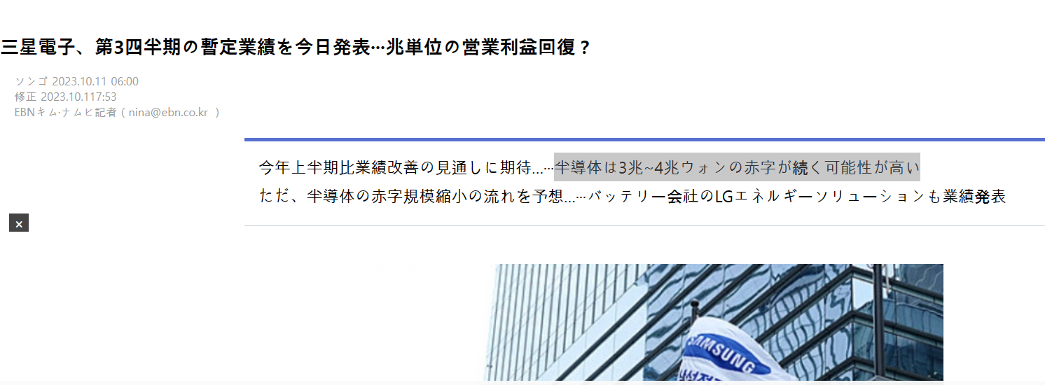 韓国半導体もどうなるかわかったもんじゃない。サムスン第3四半期、78%営業減益へ 半導体回復期待で株価上昇
