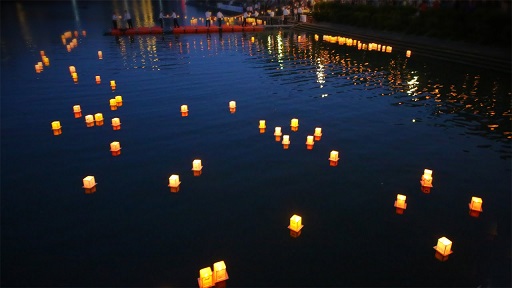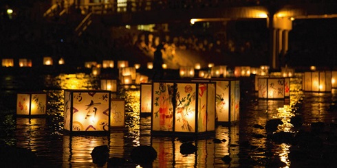 画像は「精霊流し」ではなくて「灯籠流し」なのですが、なぜかこの風景が浮かんできます。