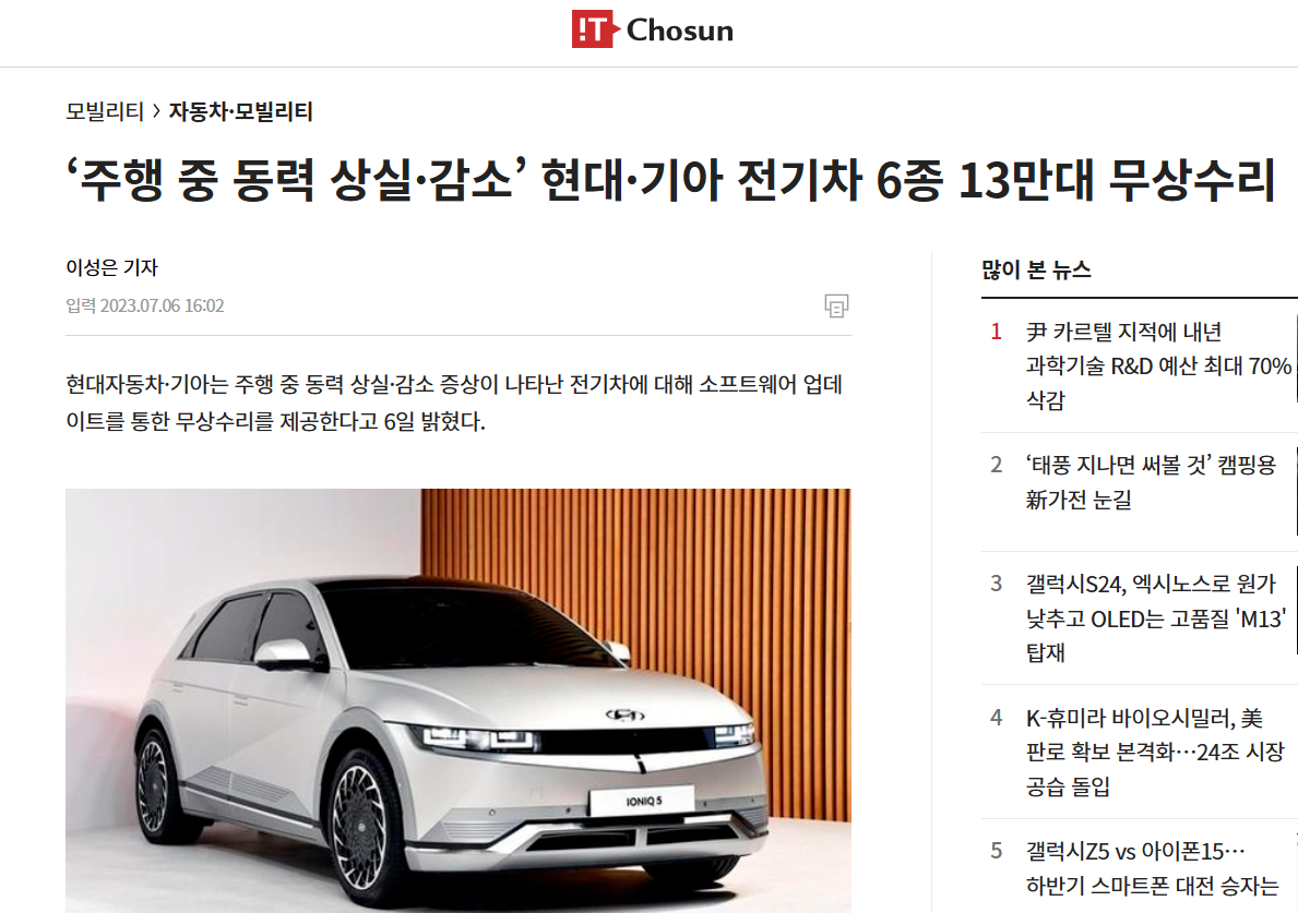 起亜EV6が1位、ニロ·コナEVに次いで