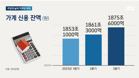 韓国銀行は融資とカードの信用取引などを全て合わせた第3四半期の家計信用が1,875兆ウォン(=約206兆円)を超えたと発表しました。