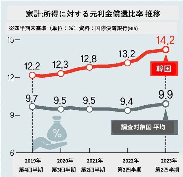 韓国、家計の債務返済率が連続過去最高値…所得を借金返済につぎ込むことに