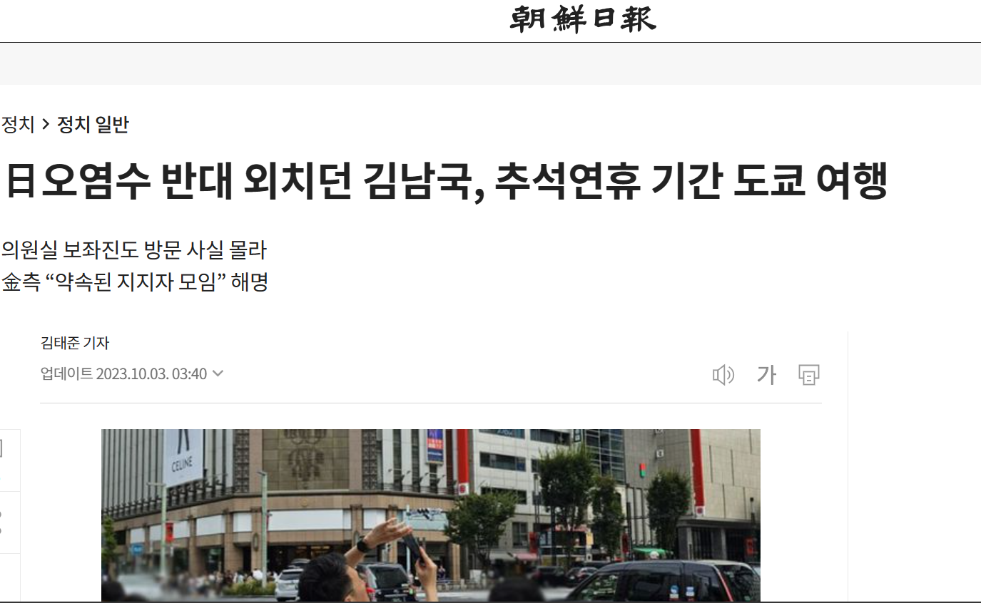 福島原発汚染水放出反対を訴えていた金南局議員、秋夕連休中に東京旅行していた