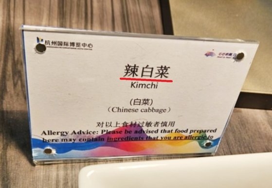 誠信(ソンシン)女子大学の徐坰徳(ソ・ギョンドク)教授は2022杭州アジア競技大会のメインメディアセンター(MMC)とメディアビレッジの食堂でキムチを「泡菜(パオツァイ)」と表記したことを確認し、組織委員会側に抗議したと明らかにした。
