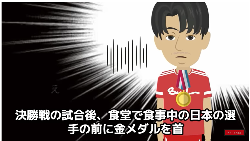 それとともに「私たちは金メダルを首に掛けてご飯を食べた。日本はじっと座りながら隣でご飯を食べていたよ。ご飯を三杯食べた。本当にどんどん入った」と痛快そうに語った。