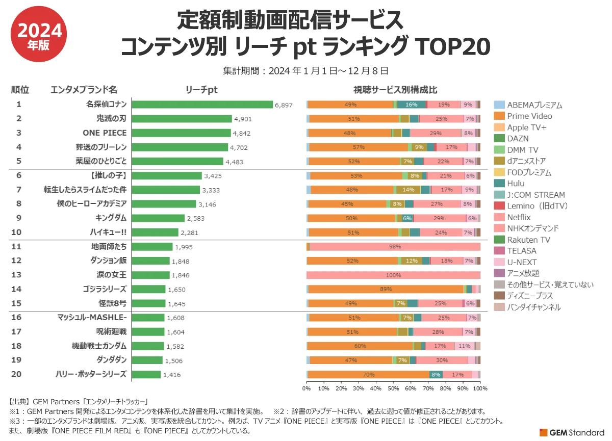 「薬屋のひとりごと」 24話 総再生数 3251 万回(1話当り 135万回)