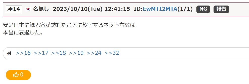 いやいや、内需充当の機会を逸失して喜んでる韓国人もどうかと思うよ? 韓国人が韓国国内で金を遣わず、海外に流失してるってことだからね。しかも韓国は慢性的な対日貿易赤字よ? 日本に貢ぐ一方だろ😂- 19