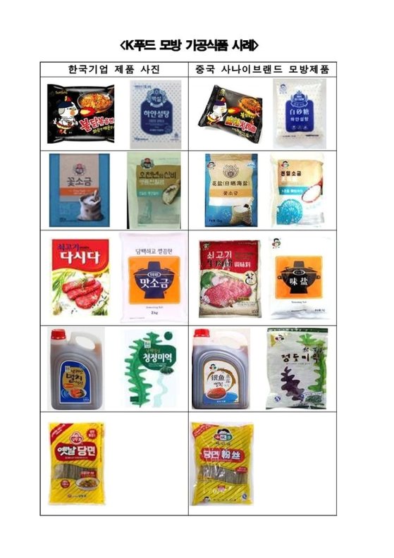 国会農林畜産食品海洋水産委員会所属の国民の力のイ・ヤンス議員はこの日「中国企業がKフードを露骨に模倣している」としてハングルで「サナイ(男)」と書かれたブランドの中国企業の事例を挙げた。過去には韓国企業名と製品名を偽造した製品が多かったが、最近はハングルを入れて韓国製品と混乱させる事例が増えているというのがイ議員の説明だ。