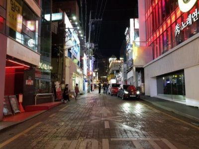 シャッター通りの繁華街(ナイトクラブ通り)