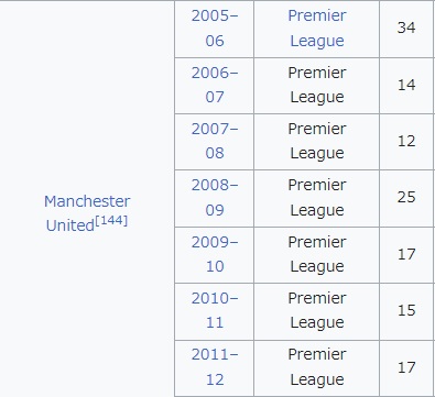パク・チソンが主力だったのは、2005-06シーズンの1年だけ。