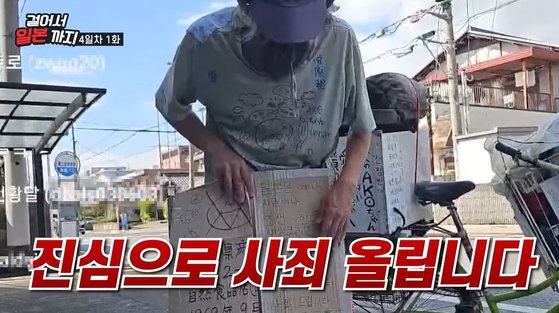 >韓国語で「日本が昔も今も朝鮮と韓国に悪いことをしています。心から謝罪します」と書かれたハングルを読み上げた。
