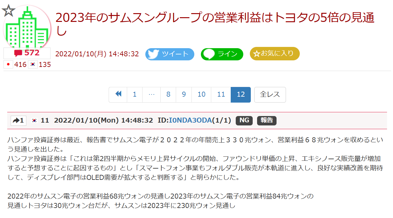 つーか、今年どころか来年ですら無く、近くて再来年、遠ければ4年後の「利益見通し」、しかもソース発表している主体が「大韓民国の証券会社」ってところで、ねぇ。