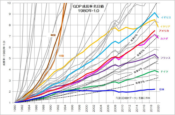 だから高い成長率を示すのは発展途上国ばかりになり、先進国等の成長しきった国の成長率は低い。