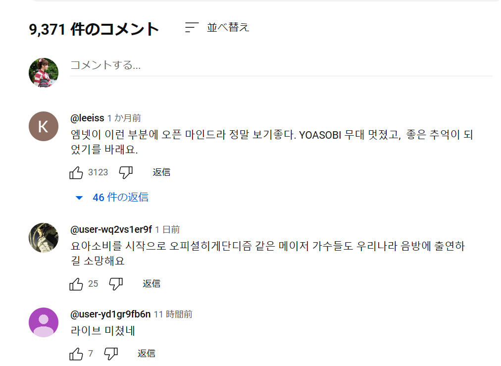 YOASOBIが「M countdown」(韓国の音楽番組)に出て「アイドル」を歌った時の動画があがっているけど、それ以降の175動画で YOASOBI の再生数(341万回)を上回っているのが1つも無いどころか、半分に達しているものさえ無いじゃん。