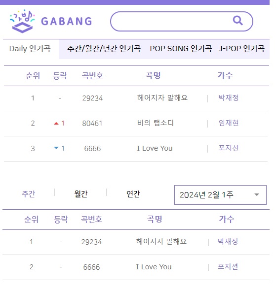 日本の曲(尾崎豊「I LOVE YOU」を 韓国人POSITION がカバー)が先週まで5週連続でカラオケランキングの2位。直近週でも3位。
