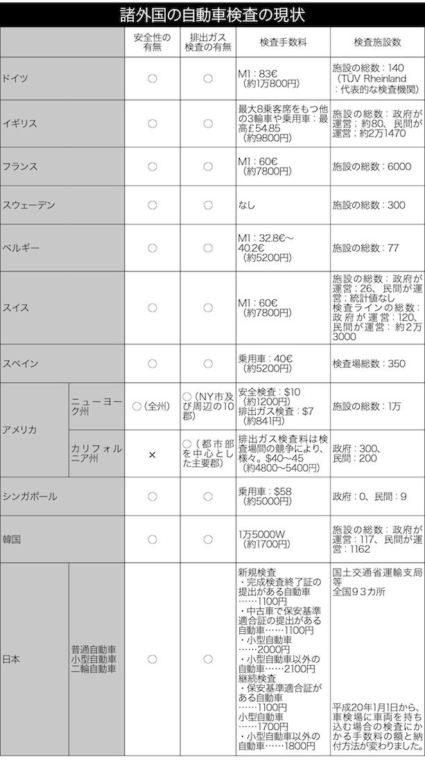 車検制度のある国は、アメリカ(ニューヨーク州などの一部の州)、ドイツ、イギリス、フランス、スウェーデン、ベルギー、スイス、スペイン、イタリア、シンガポール、韓国、タイ、メキシコ、ケニア、ロシアなどです。 車検制度がある国においても、それぞれの国によってシステムが異なります。