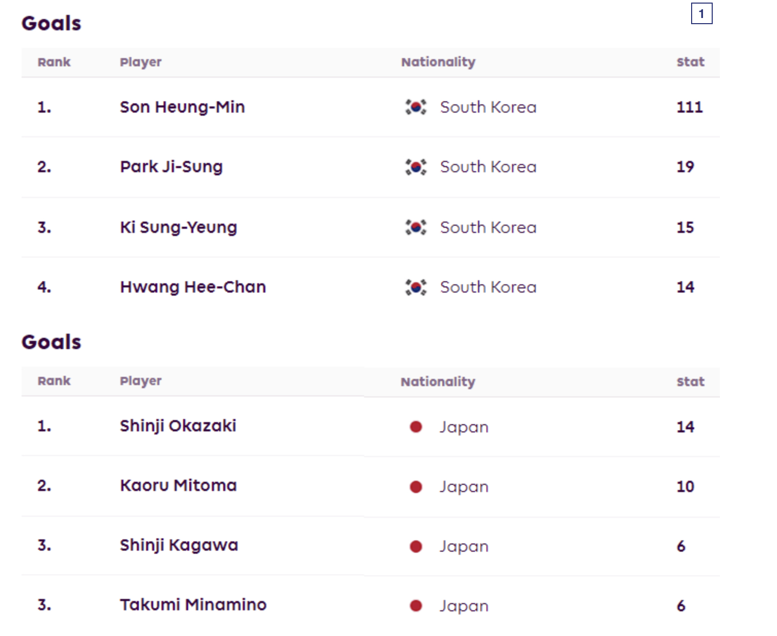 한국 vs 일본 프리미어리그 득점 순위
