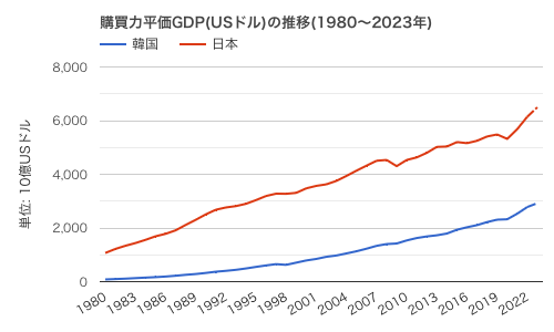 韓国人が大好きなPPP GDPで見てみると、経済成長が出来ないどころか、順調に成長しているんだがね。