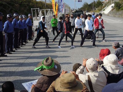 (画像)韓国高校生12人も抗議 辺野古ゲート前 テコンドー披露し連帯ここは日本です。