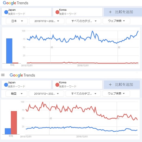 カテゴリー検索の割合で比べても韓国人の方がストーカーだと答えは出てる。