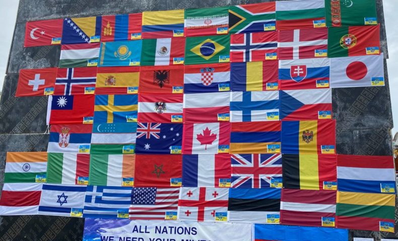キーウの独立広場には参加している兵士の国旗を掲げ参加人数と戦死数を公開している。