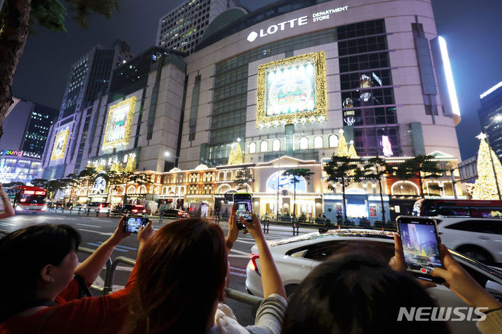 ロッテデパート本店(ソウル市中区)に設置されたクリスマスイベント用の大型ビジョンに、性犯罪を予告するようなメッセージが掲載され、物議を醸している。