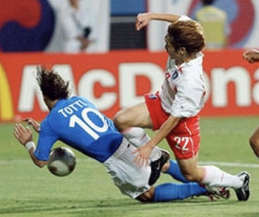 韓国の代表チームはテコン・サッカーしかできないから、本当は試合が成立していない。