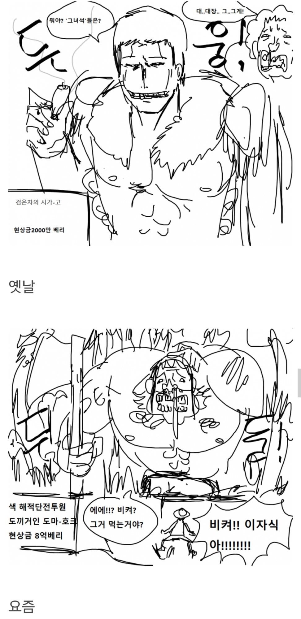 사진은 최근 원피스 캐릭터가 기괴스럽게 변하는것을 비판하는 그림이다.