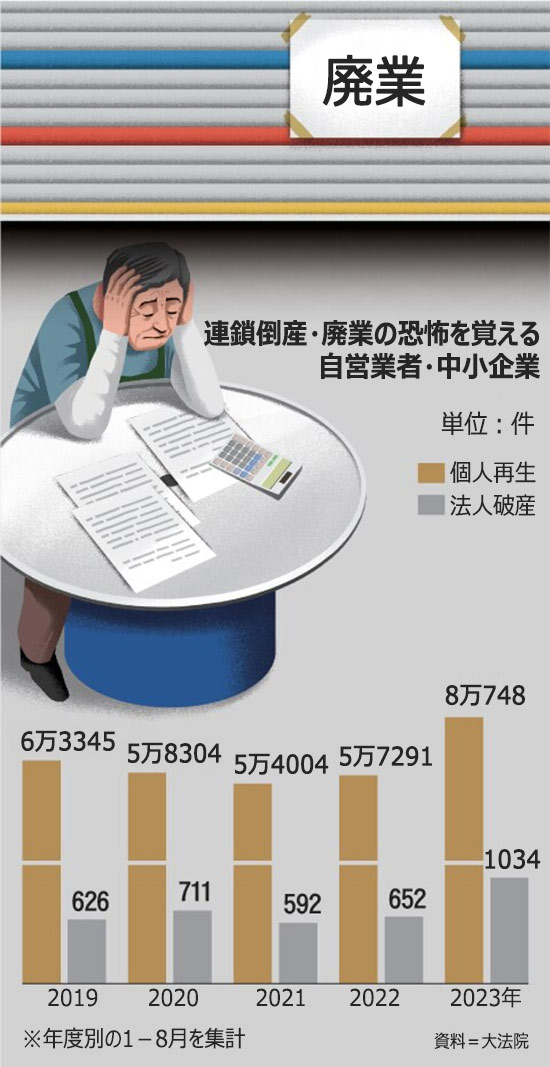 自営業者の破綻過去最高、中小企業の倒産も過去最高を更新。