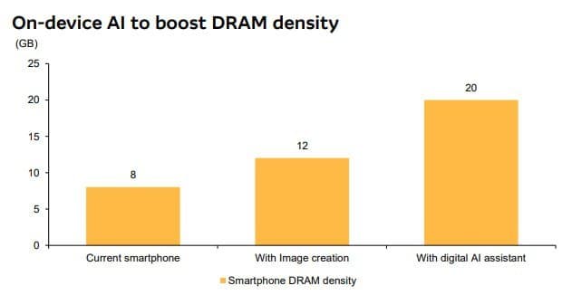 オンデバイスAI機能が搭載されたスマートフォンは、一般スマートフォンに比べて多くはDRAM容量が2.5倍以上増加する。 AIコンピューティングパワーの核心がまさにDRAMであるためだ。