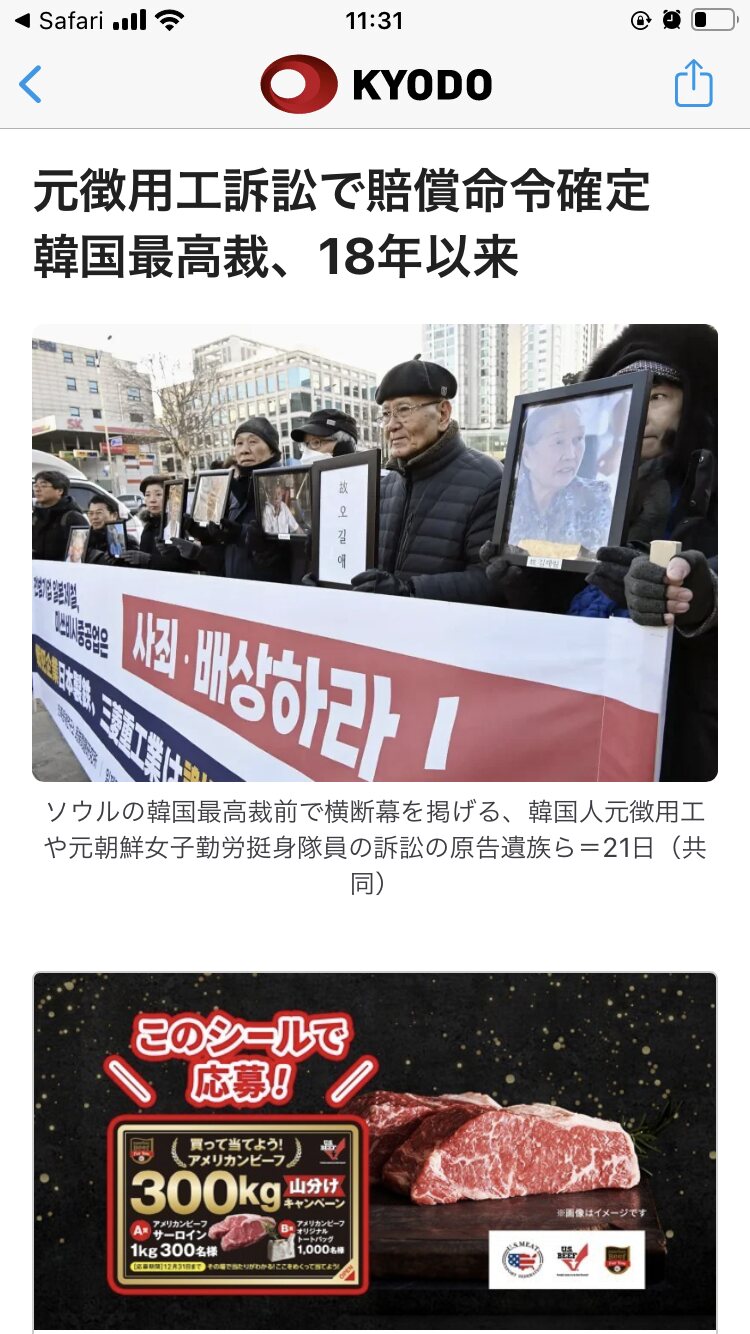 原告は賠償金と5年間の遅延利息を加え、1人当たり2億3000万~3億1000万ウォン(約2650~3570万円)を受け取ったという。財源は1965年の日韓請求権協定当時に支援を受けたポスコが寄付した40億ウォンに基づいている。