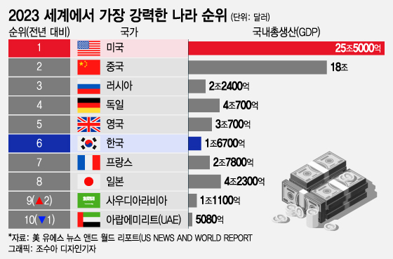 최근 미국 시사주간지 유에스 뉴스 앤드 월드 리포트(US NEWS AND WORLD REPORT, 이하 USNWR)는 '2023 세계에서 가장 강력한 나라'(the planet's most powerful countries) 순위를 발표했다.