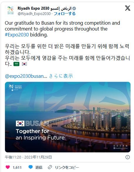 万博誘致に失敗し自国をディスる韓国にエールを送るサウジ。