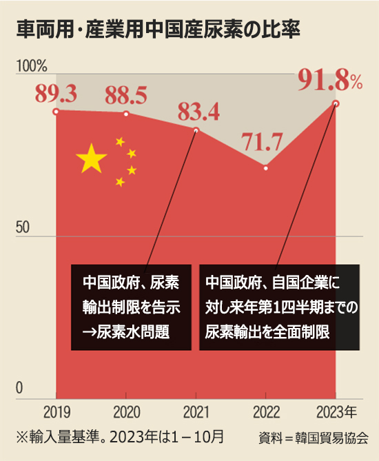 また、中国の主要各社は、来年の輸出規模も平年の5分の1の水準に抑えることで合意した。車両用・産業用尿素の90%以上を中国に依存してきた韓国産業界への衝撃が予想される。