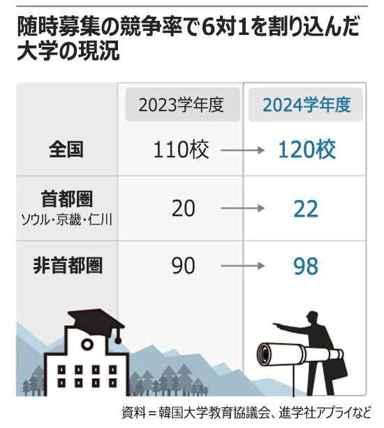 韓国の大学推薦入試、6割は定員割れ…