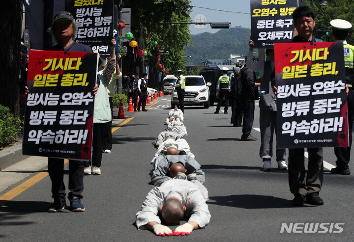 地面に寝そべる韓国人…五体投地で梨泰院特別法の採択求める