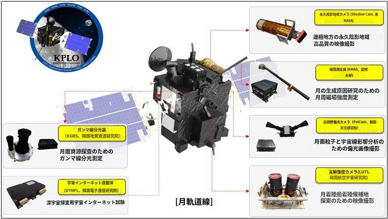 > ダヌリ号には、韓国が開発した5つの装備と米国航空宇宙局(NASA)が開発した月永久陰影地域観測カメラ「シャドーカム」が搭載されている。