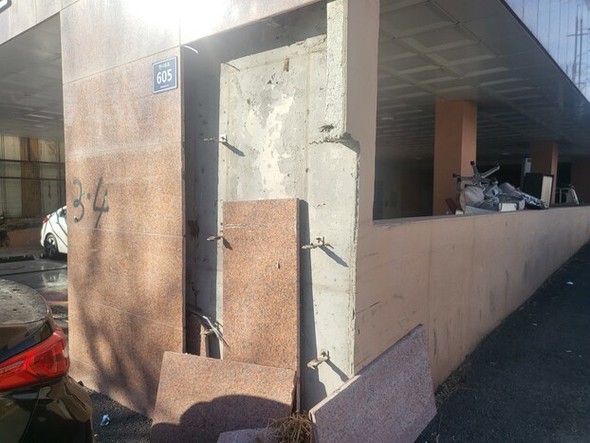 駐車場として使われる1階の外壁は石造仕上げ材が割れたまま放置されており、落下した外装材の奥では建物の骨組みを成す鉄筋とコンクリートが丸見えになっていた。共同玄関の奥の郵便受けには、すべての部屋に管理費と電気料金の延滞告知書がぎっしりと差し込まれていた。19日午前に訪れた仁川市弥鄒忽区道禾1洞(インチョンシ・ミチュホルグ・トファ1ドン)のあるマンションは、陰気な衰退の気配に満ちていた。
