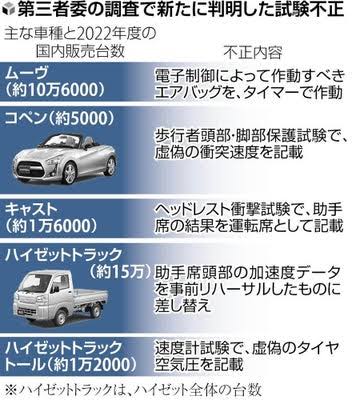 ダイハツが公表した不正対象車種一覧