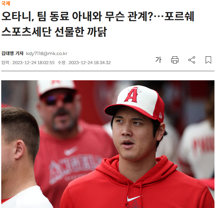 오타니, 팀 동료 아내와 무슨 관계?…포르쉐 스포츠세단 선물한 까닭