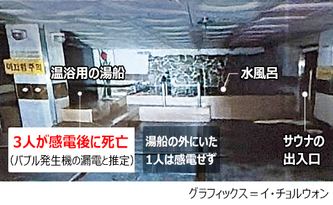 事故が発生したお風呂は宿泊施設と一緒に運営するところで、去る1984年12月、使用承認を受けて40年近く営業をしてきていました。6月に電気安全公社が行った定期点検で適合評価を受けましたが、感電事故を防げませんでした。警察は湯に電気が流れ事故が起きたとみて、国立科学捜査研究院と電気安全公社などと合同感食を行いました。