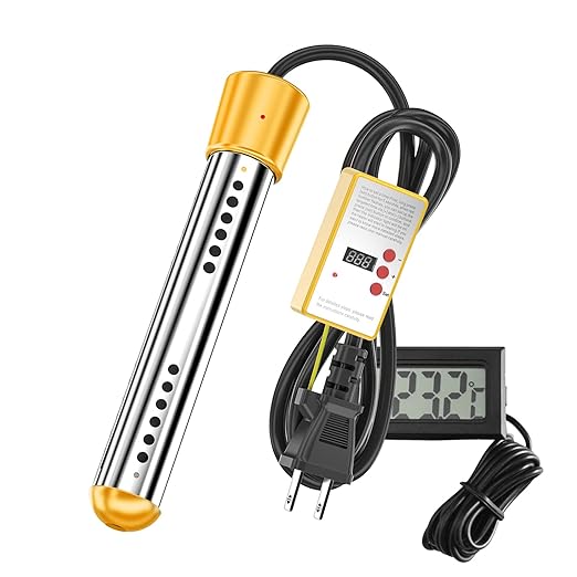 投げ込みヒーター 110V 1500W 携帯湯沸かし器 投げ込みヒーター 風呂 70℃ 自動電源オフ 浴槽用給湯器 タイマー付き バスタブ、インフレータブルプール、地上プール、バケツ、洗面器に適しています