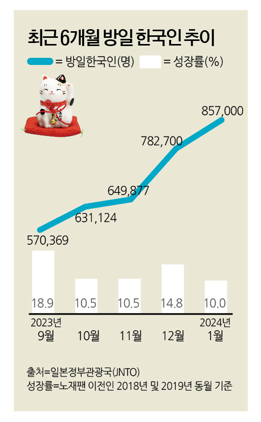 1월 한국인 85만7,000명 일본여행 떠나 2019년 동월대비 증가, 중국과 2배 격차 한국관광공사, 일본인 유치 활성화 주력 2024-02-23